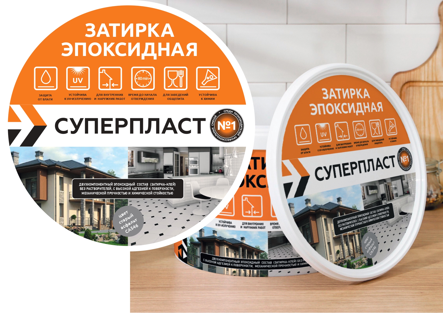Двухкомпонентный эпоксидный состав (затирка-клей) без растворителей с высокой адгезией к поверхности, механической прочностью и химической стойкостью.